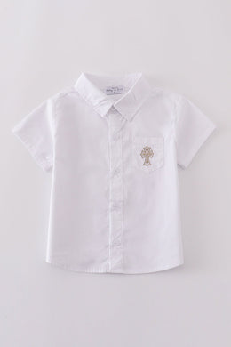 Premium cross embroidery button down shirt
