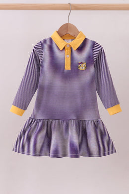 Premium Maroon Go Dawgs Mississippi embroidery ruffle dress