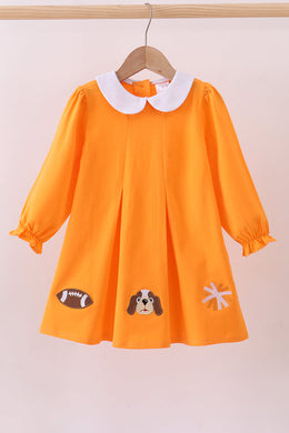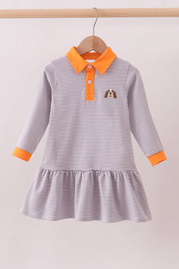 Premium Orange Tennessee Go Team embroidery ruffle dress