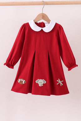 Premium Red Go Dawgs Georgia embroidery ruffle dress