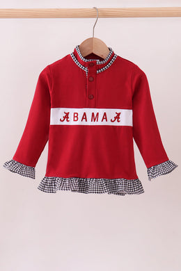 • Premium Maroon Georgia bulldog gingham ruffle romper