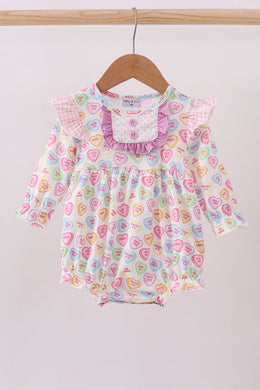 • Pink heart checkered bamboo ruffle pajama zipper romper