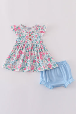 Blue floral print bloomer set
