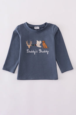 Navy hunting embroidery top