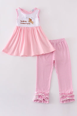 Lavender floral bow embroidery swiss dot girl bloomer set