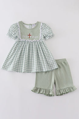 Sage easter he is risen cross embroidery girl set
