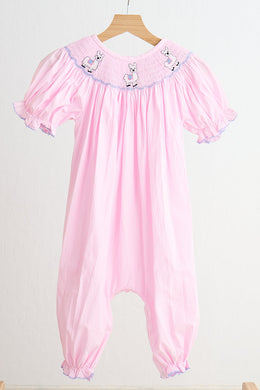 Red chrismtas santa tree reindeer hand smocked gingham romper