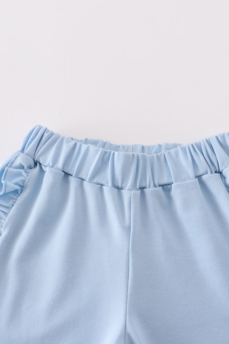 Get ready to bloom with this adorable blue floral bow print girl set! Made from high-quality fabric, this set is perfect for any little fashionista. The beautiful print and playful bow add a touch of whimsy to any outfit. Get yours today and watch your little one stand out in style!