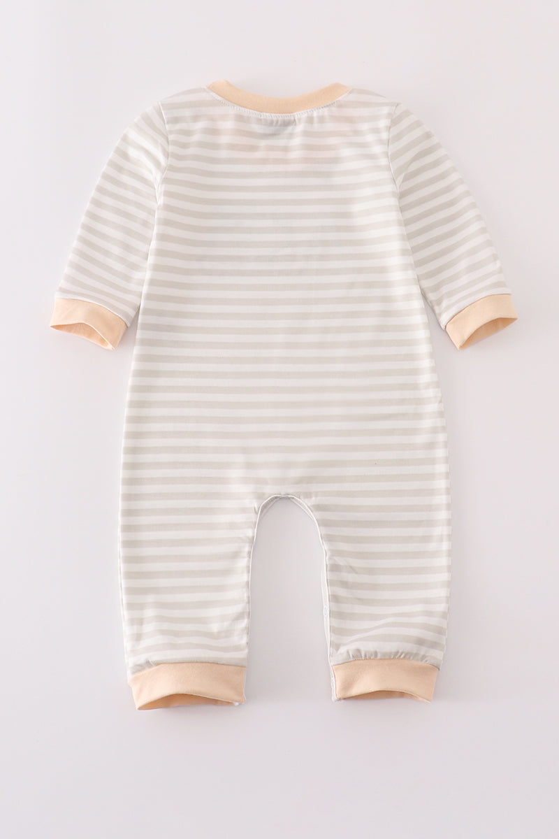 • Load image into Gallery viewer, Cream excavator applique stripe romper