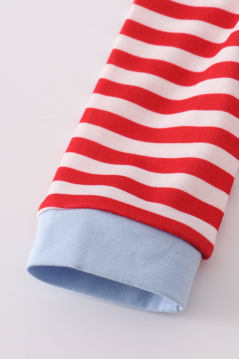 This charming romper features playful red airplane embroidery and classic stripes, perfect for little adventurers. Soft and comfortable, it’s designed for easy movement and all-day fun. Let your child’s imagination take flight in this delightful outfit!