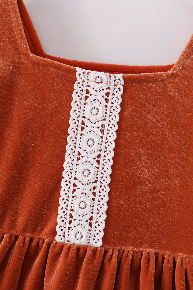 Get your little fashionista ready for any occasion with our Caramel Velvet Lace Girl Dress. Made from luxurious velvet fabric and adorned with delicate lace, this dress will make her feel like a princess. Perfect for dress-up parties or special events. Upgrade her wardrobe now!