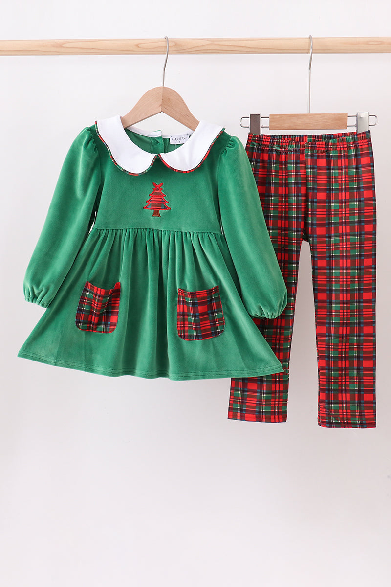 • Load image into Gallery viewer, Green christmas tree applique velvet pants set