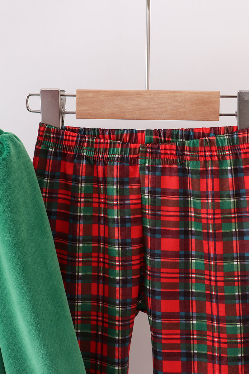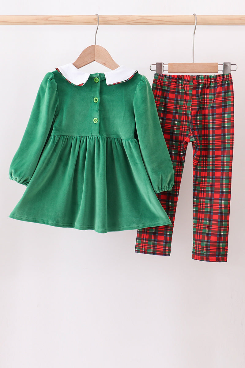 Get festive with this Green Christmas Tree Applique Velvet Pants Set! Soft velvet fabric keeps you cozy, while the cheerful tree applique adds a fun holiday touch. Perfect for lounging by the fire or holiday parties, this set brings comfort and seasonal charm together in one playful outfit.