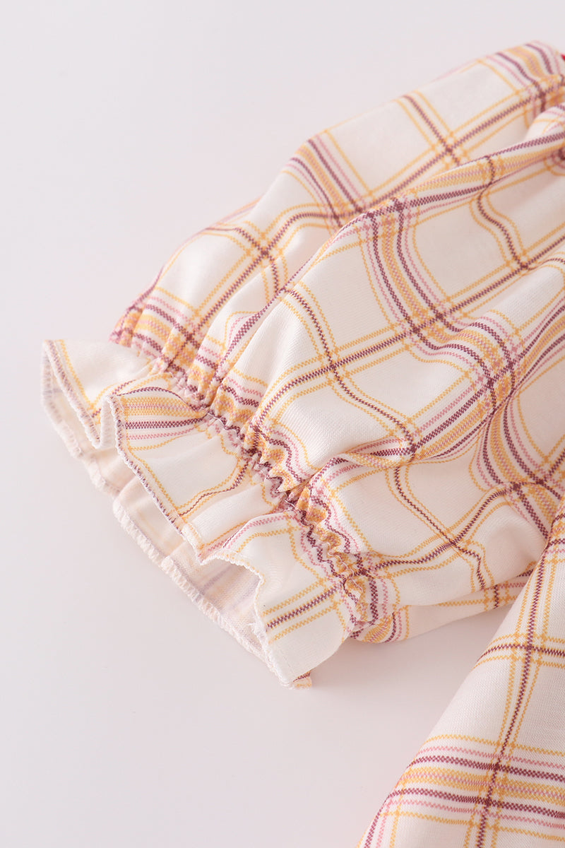 • Load image into Gallery viewer, Khaki farm embroidery smocked plaid dress