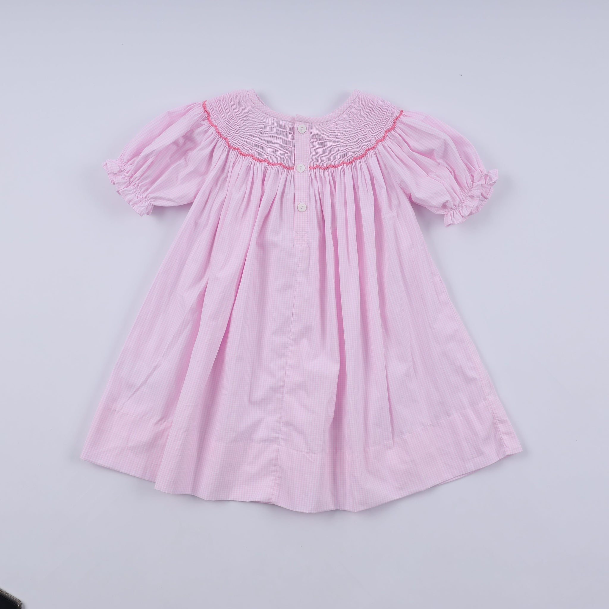 Twirl into the season in this delightful pink dress featuring an adorable hand-smocked Christmas tree design. Perfect for holiday photos and festive celebrations, this charming piece combines comfort with festive flair. The intricate smocking detail adds texture and visual interest, while the soft pink hue keeps things sweet and modern. An instant favorite for little ones who love the magic of Christmas!