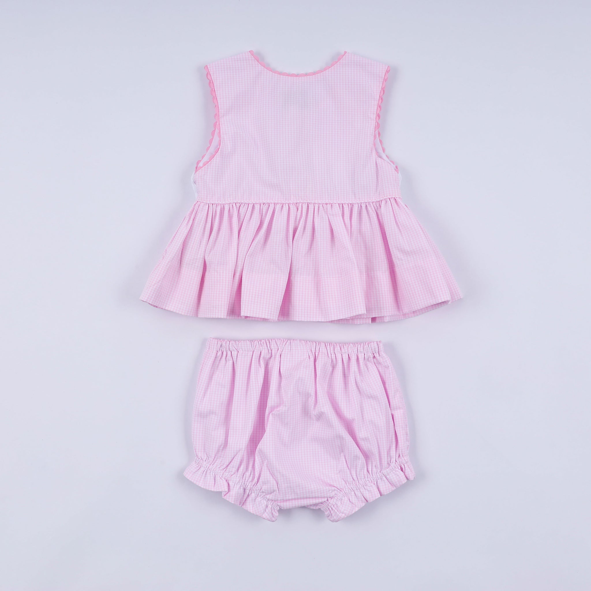 Pink princess hand smocked plaid bloomer set